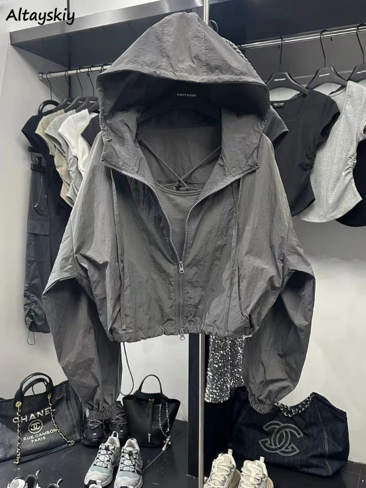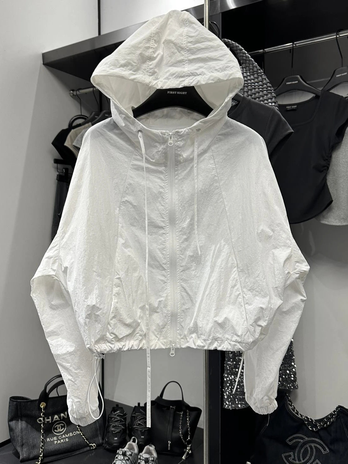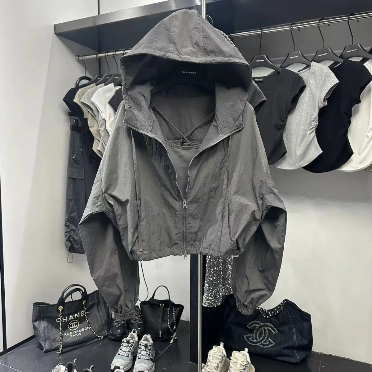 Ľahká letná bunda pre ženy s voľným strihom, crop dĺžkou a praktickou kapucňou. Vyrobená z tenkého materiálu vhodného ako ochrana pred slnkom (sunscreen) počas horúcich dní. Jednofarebný, čistý dizajn v 3 rôznych farbách sa ľahko kombinuje a hodí sa na každodenné nosenie – ideálna do školy, na výlety, festivaly alebo mestský streetwear. Perfektný kúsok pre milovníčky pohodlného a trendového oblečenia.